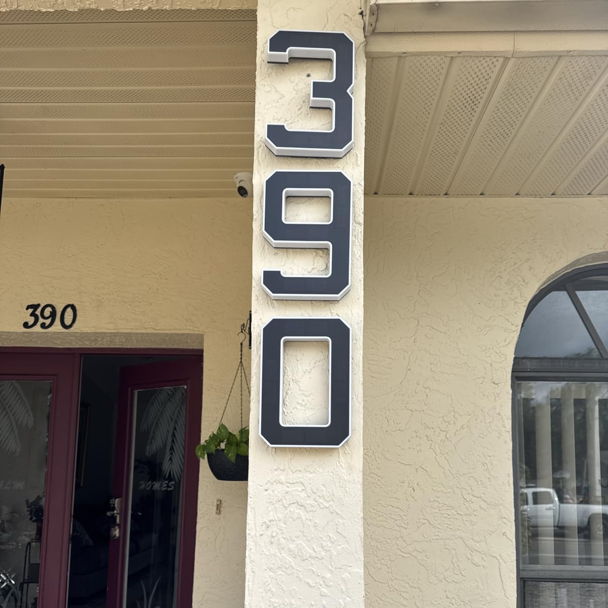 Elevate your home’s exterior with our 9-inch Solar Lighted House Numbers, designed to stand out both day and night. Featuring a modern black-and-white design with warm LED illumination, they ensure your address stays visible from a distance to make it easy for visitors, delivery drivers, and emergency service personnel to find your house.
