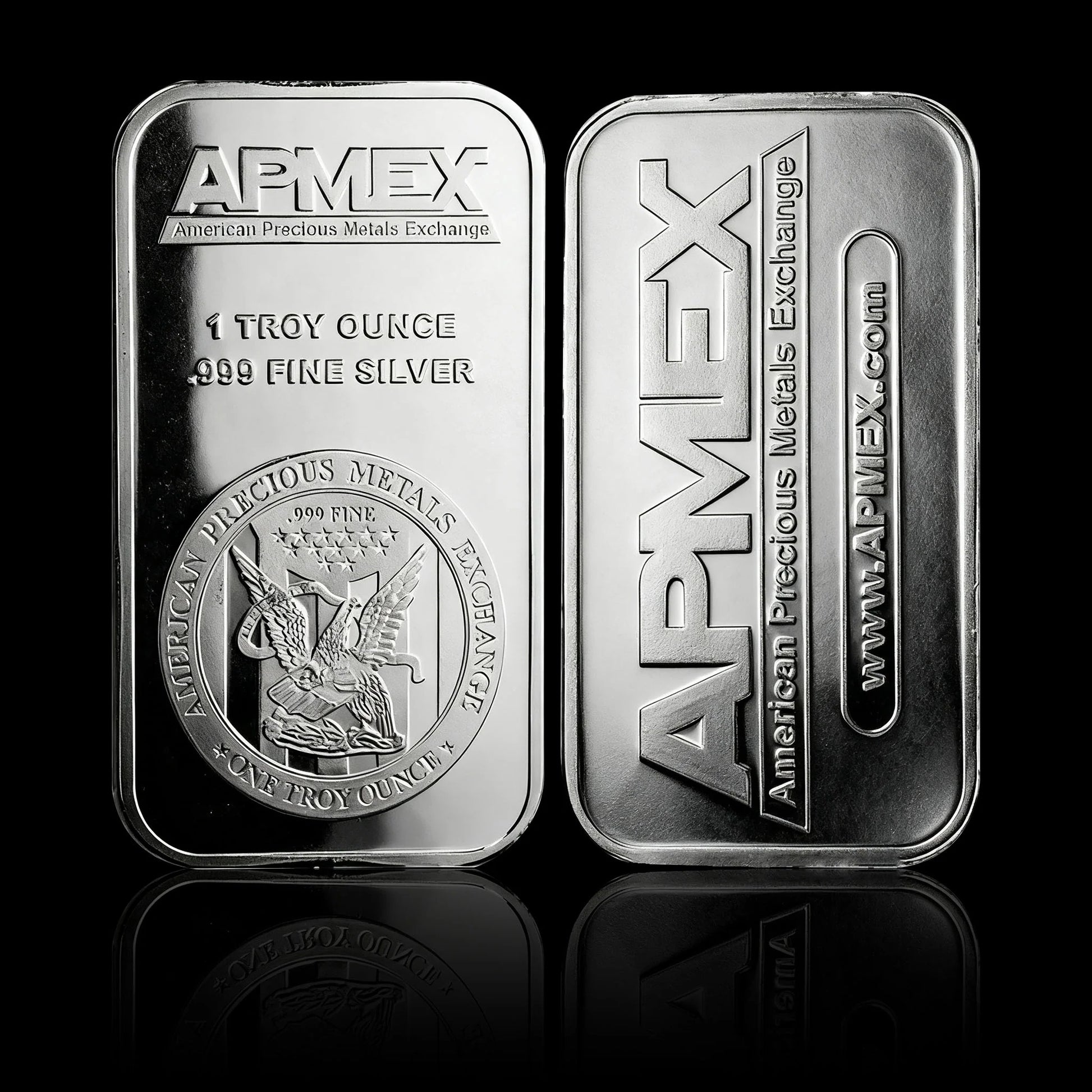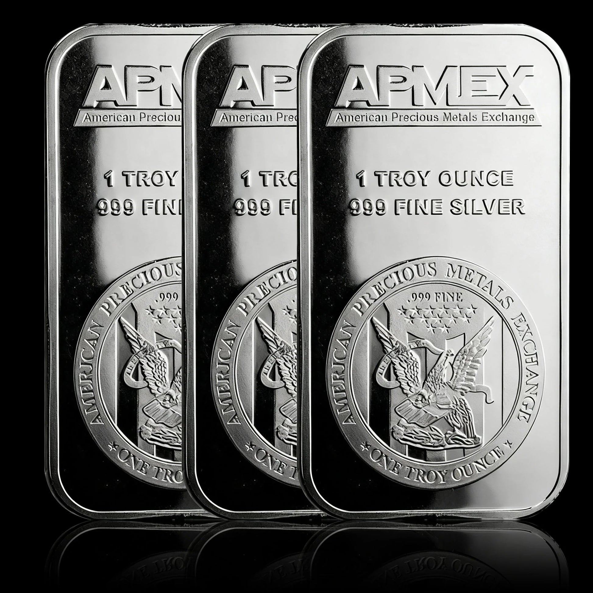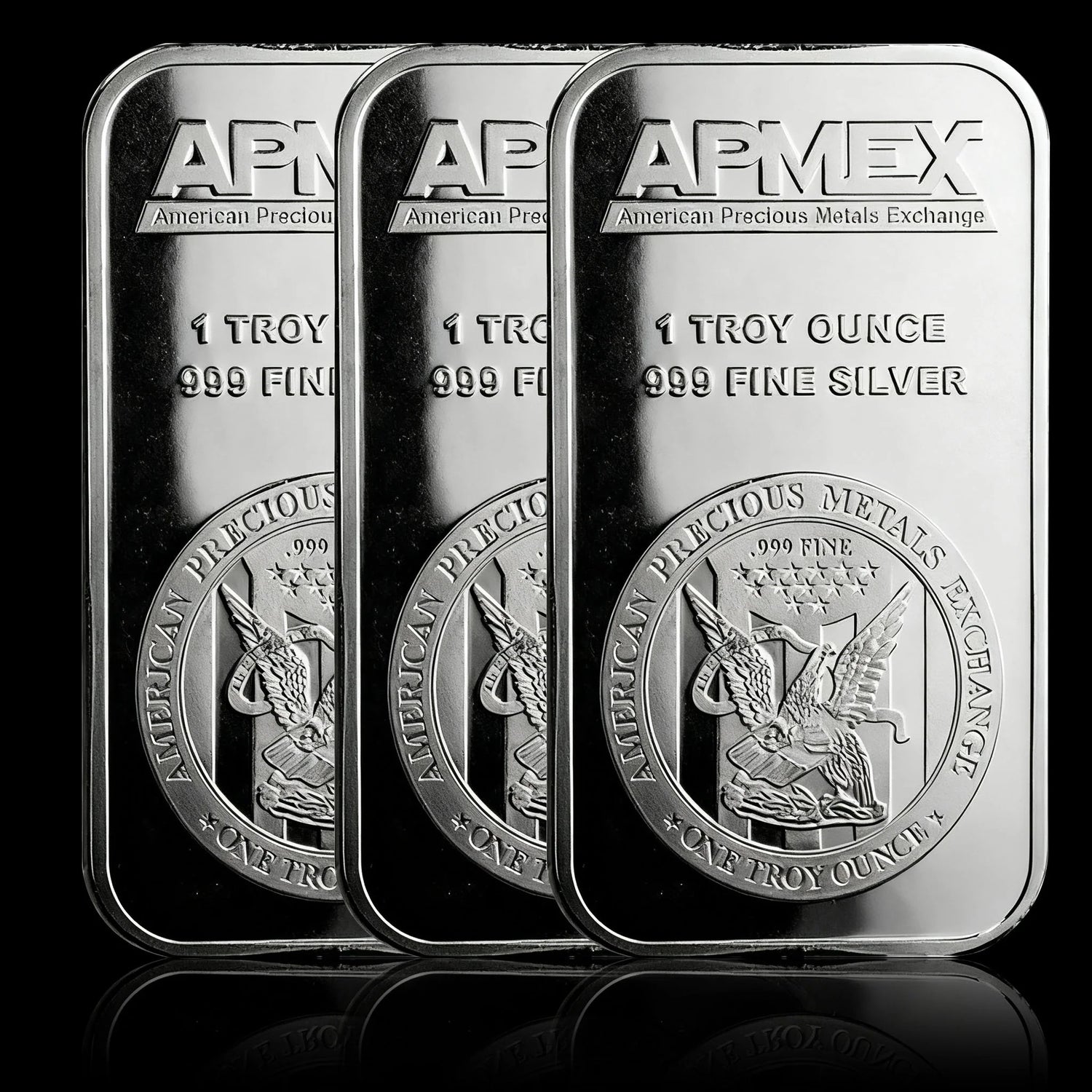 Crafted from 1 oz of .999 fine silver, the APMEX Silver Bar embodies both purity and prestige. Adorned with the iconic American Eagle and 13-colony design, itâs more than silverâitâs a piece of enduring history. Each bar arrives sealed and authenticated, reflecting APMEXâs uncompromising standard as one of the worldâs most trusted names in precious metals.