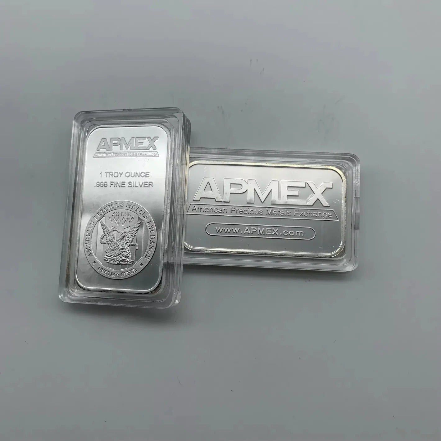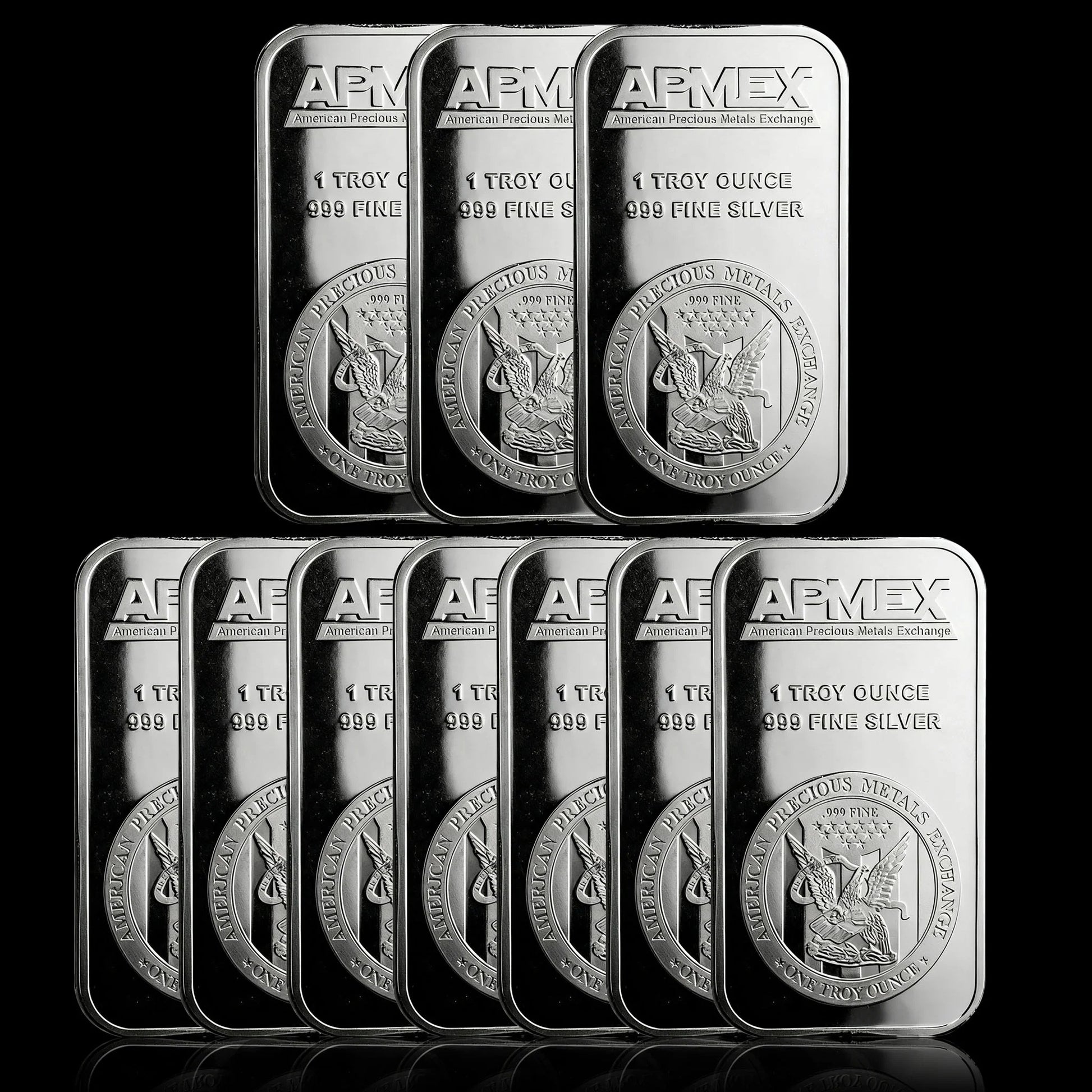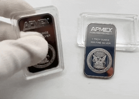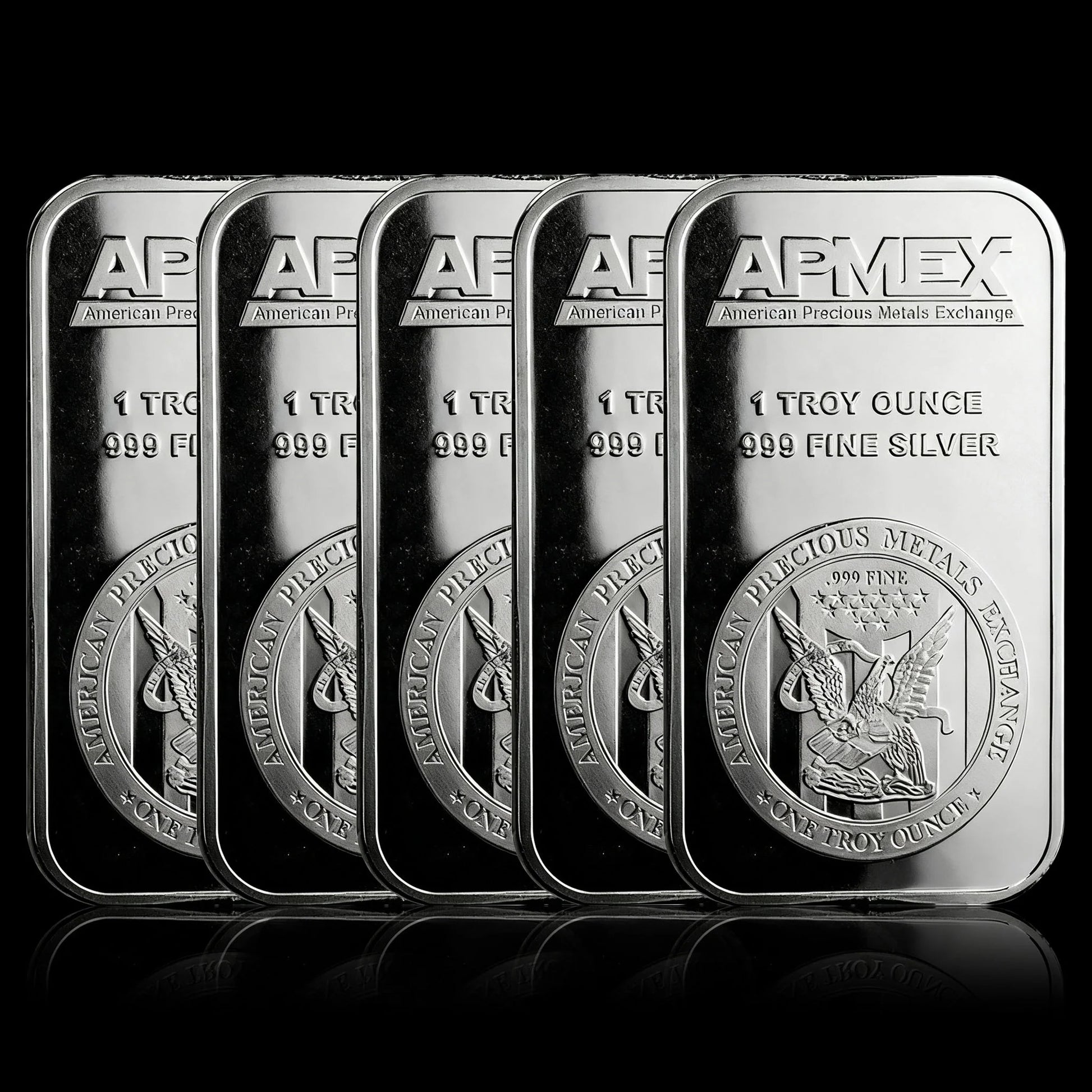 Crafted from 1 oz of .999 fine silver, the APMEX Silver Bar embodies both purity and prestige. Adorned with the iconic American Eagle and 13-colony design, itâs more than silverâitâs a piece of enduring history. Each bar arrives sealed and authenticated, reflecting APMEXâs uncompromising standard as one of the worldâs most trusted names in precious metals.