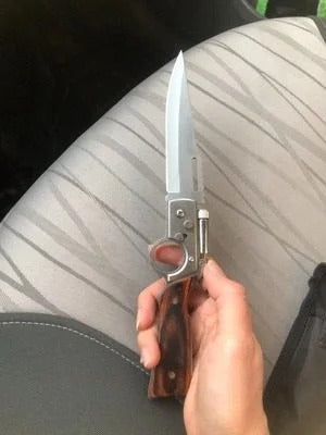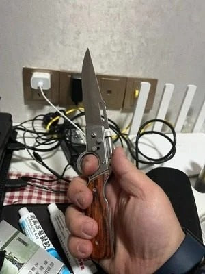 Blade snaps out like lightning⚡, grip locked tight in your hand—no slip, no weakness. And when darkness falls? 💡 Twist, and the built-in light ignites your path. This isn’t just a knife… it’s your 24/7 survival partner.