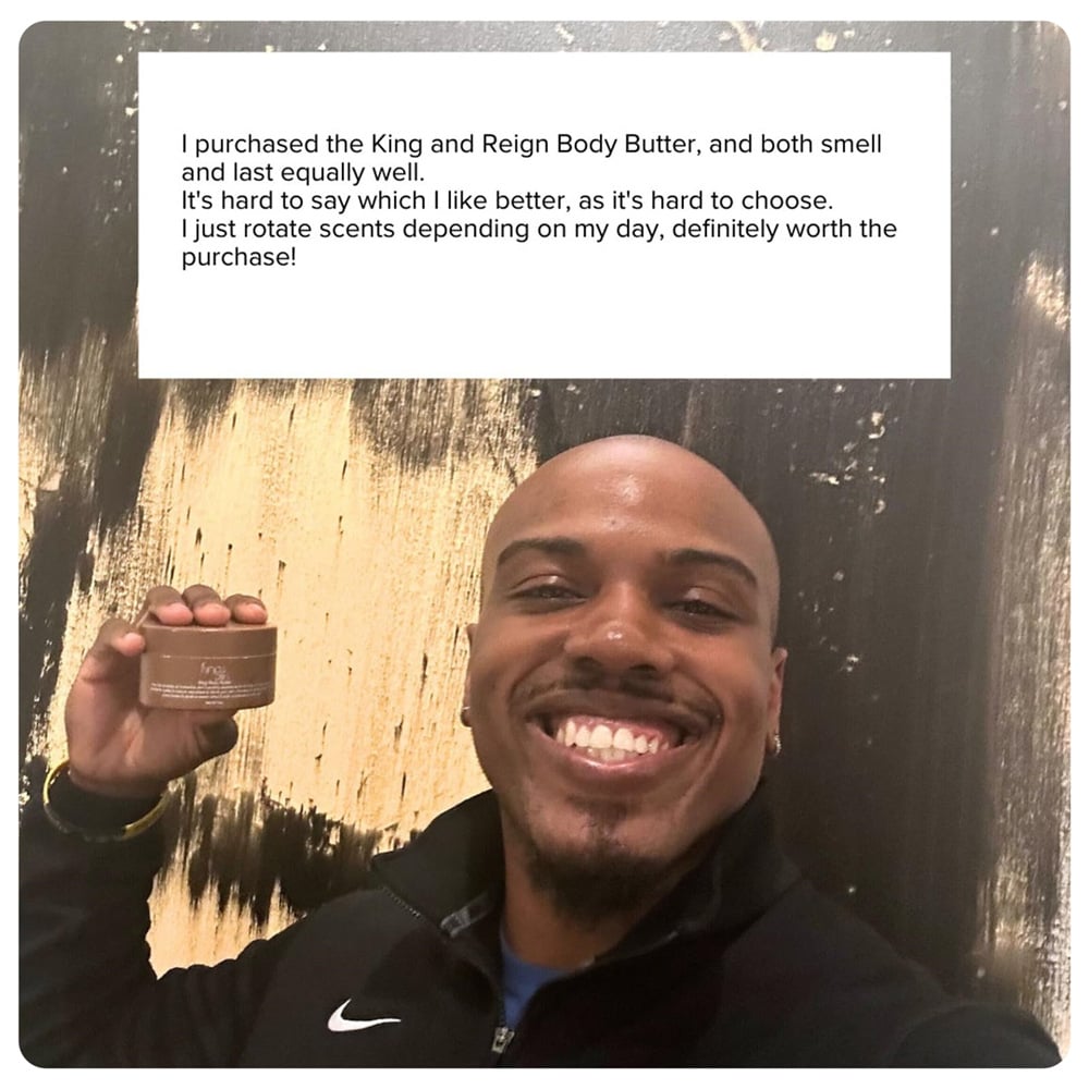 āWhat I love most is how itās infused with shea and mango butter, so it really sinks in and leaves my skin feeling super soft and deeply hydrated all day. Plus, the scent is amazing ā kind of luxurious and fresh ā it totally elevates my vibe and boosts my confidence whenever I wear it. Definitely feels like a little royal treat for myself!ā