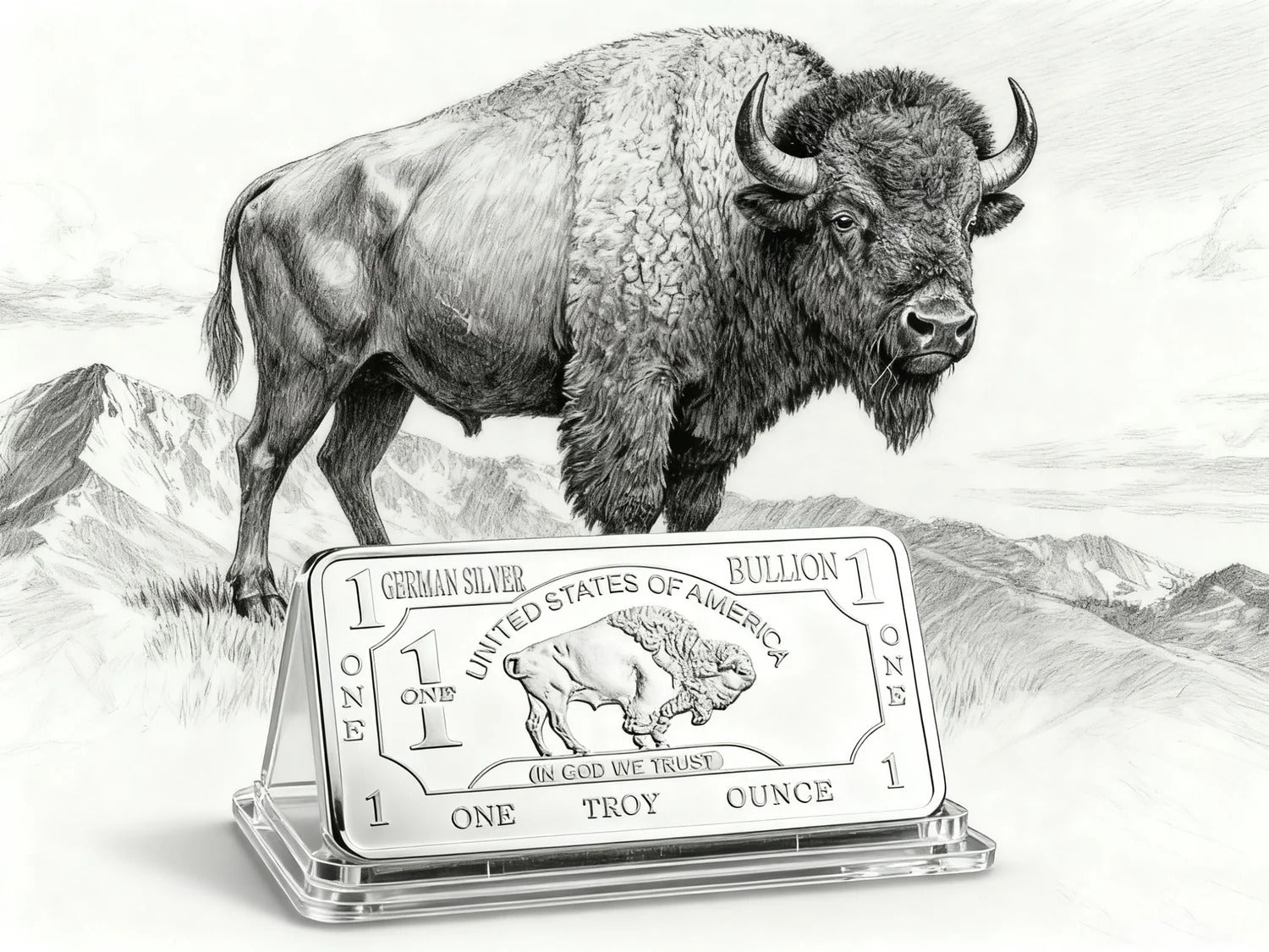 Buffalo Commemorative German Silver Bar is a 1 Troy oz collectible that merges American West history with lasting craft.