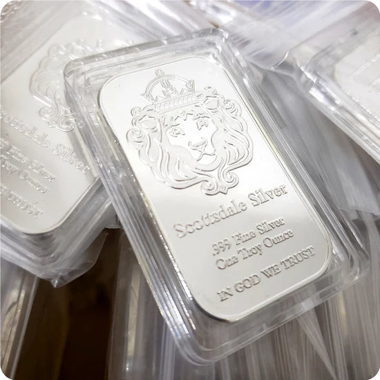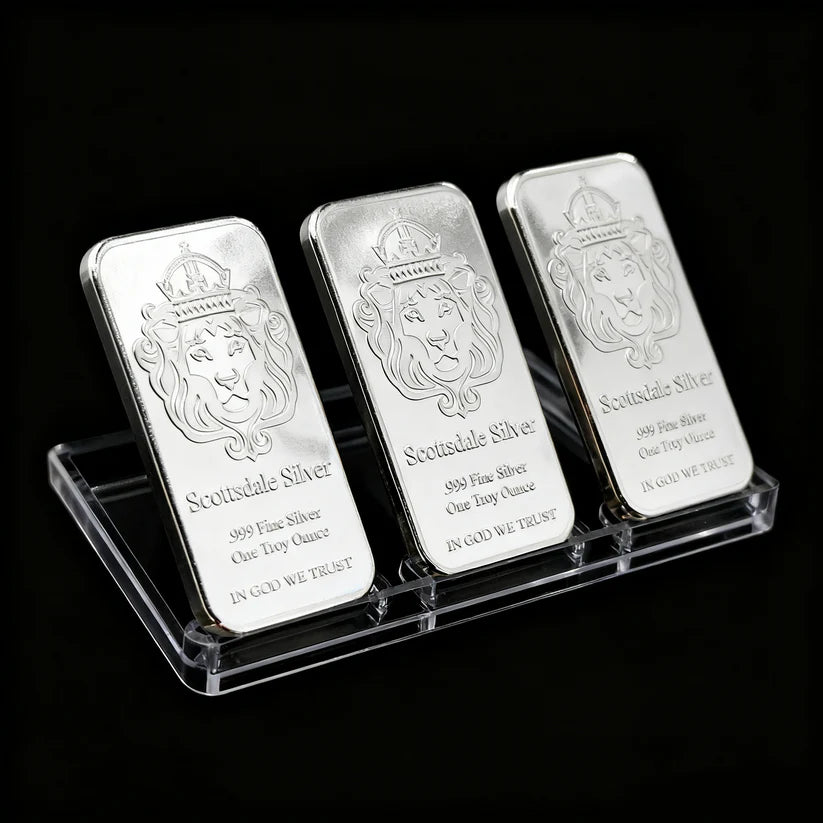 Silver bars have a lower premium (the extra cost over raw silver price) than coins. This lets you get more silver for your money upfront — ideal for "stacking" (bulk investing) without overpaying.