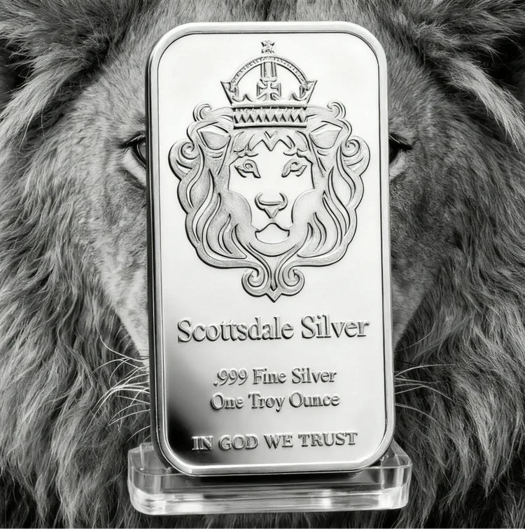 • "The obverse features the Scottsdale mint's iconic crowned lion logo... with inscriptions that describe the bar's metal content, fineness, and weight"🔗